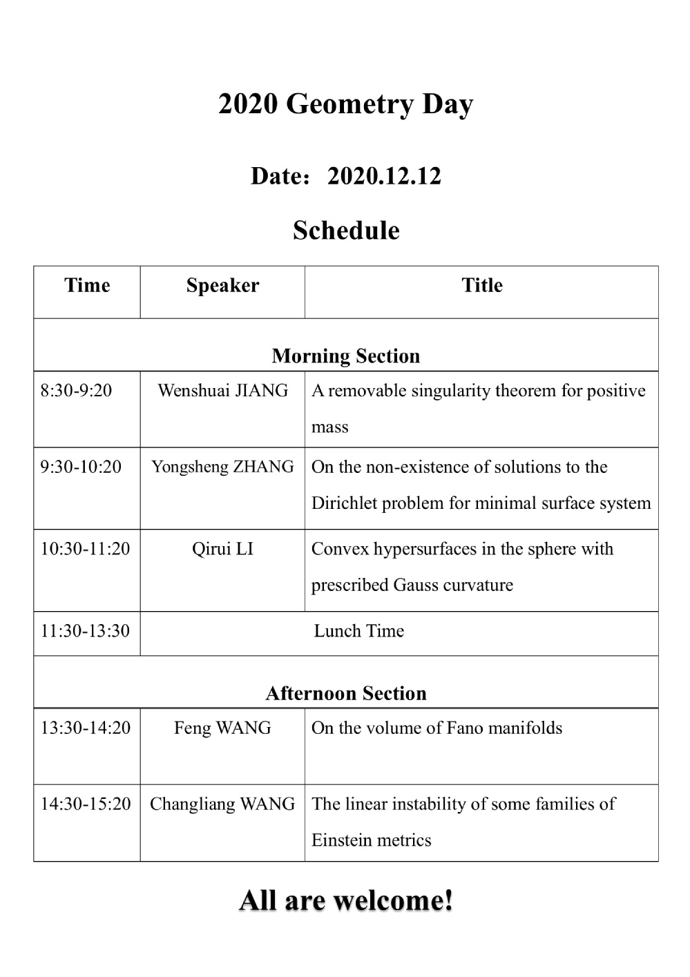 2020 Geometry Day
