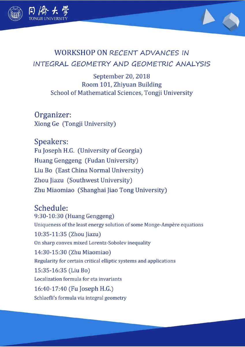 Workshop on Recent Advances in Integral Geometry and Geometric Analysis