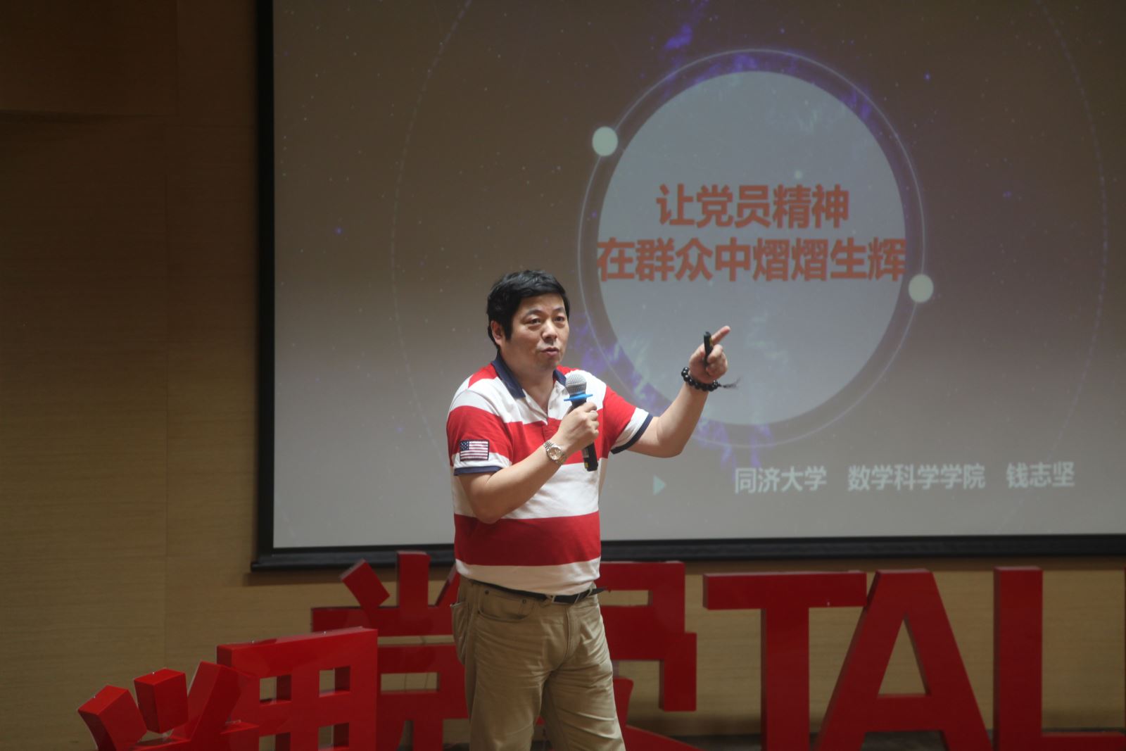 首先给大家进行分享的是教工第二党支部的支部书记钱志坚老师。钱老师的分享围绕入党动机、入党准备、党员精神和工作方法四个方面展开。先从自身经历出发,讲述自己的入党动机和准备,随后引用习近平总书记参观一大会址的讲话阐述何为党员精神,最后从对老党员的关爱和对有缺点的党员进行发展两个方面出发,讲述党支部工作的方法,以实际行动为大家展现怎样才能“让党员精神在群众中熠熠生辉”。