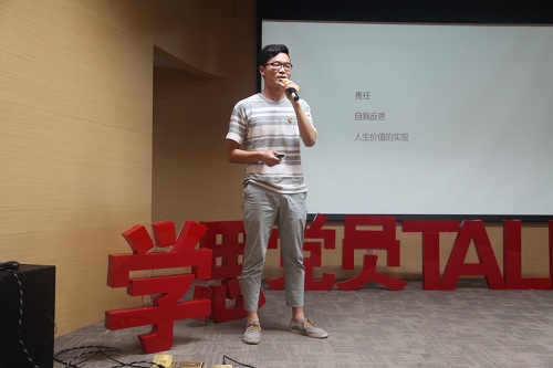 同济大学追求卓越奖学生奖获得者、本科生党支部党员伍三友同学,结合自己的逆袭经历,激励大家要争做带头人。他谈论到自己支教时对贫困学子艰苦求学的震撼,并从“责任”到“自我反思”再到“人生价值的实现”,一步步讲述为什么要做带头人,以及怎样做好一名带头人,在这个过程中健康的体魄和强大的党员精神都在支撑着他勇往直前。
