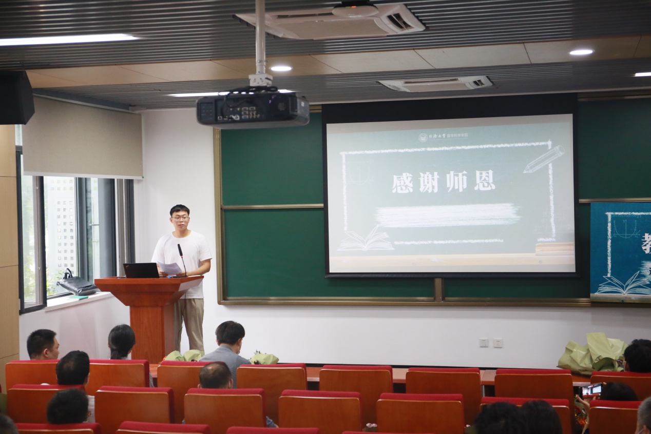 2019级数学拔尖一班的李沛远作为学生代表发言,表达真挚的谢意以及节日的祝福,感谢老师们在学习上倾囊相授,用饱满的授课热情和高质量的课堂引领同学们继续去探索真理无穷;在生活上给予最近距离的关心和帮助。自己也定将努力成为一名祖国的栋梁之才,来回馈学院和老师们的无私付出。
