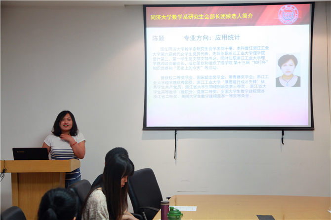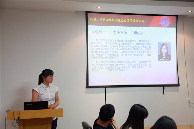 之后,进入主席团成员和各部门部长的竞选环节,各竞选人分别就自己对部门的认识,以及在过去工作中取得的成绩和对未来工作的展望等方面做竞选演讲。竞选通过无记名投票的方式进行表决,并采用现场计票揭晓竞选结果。数学系研究生会换届选举顺利落下帷幕。