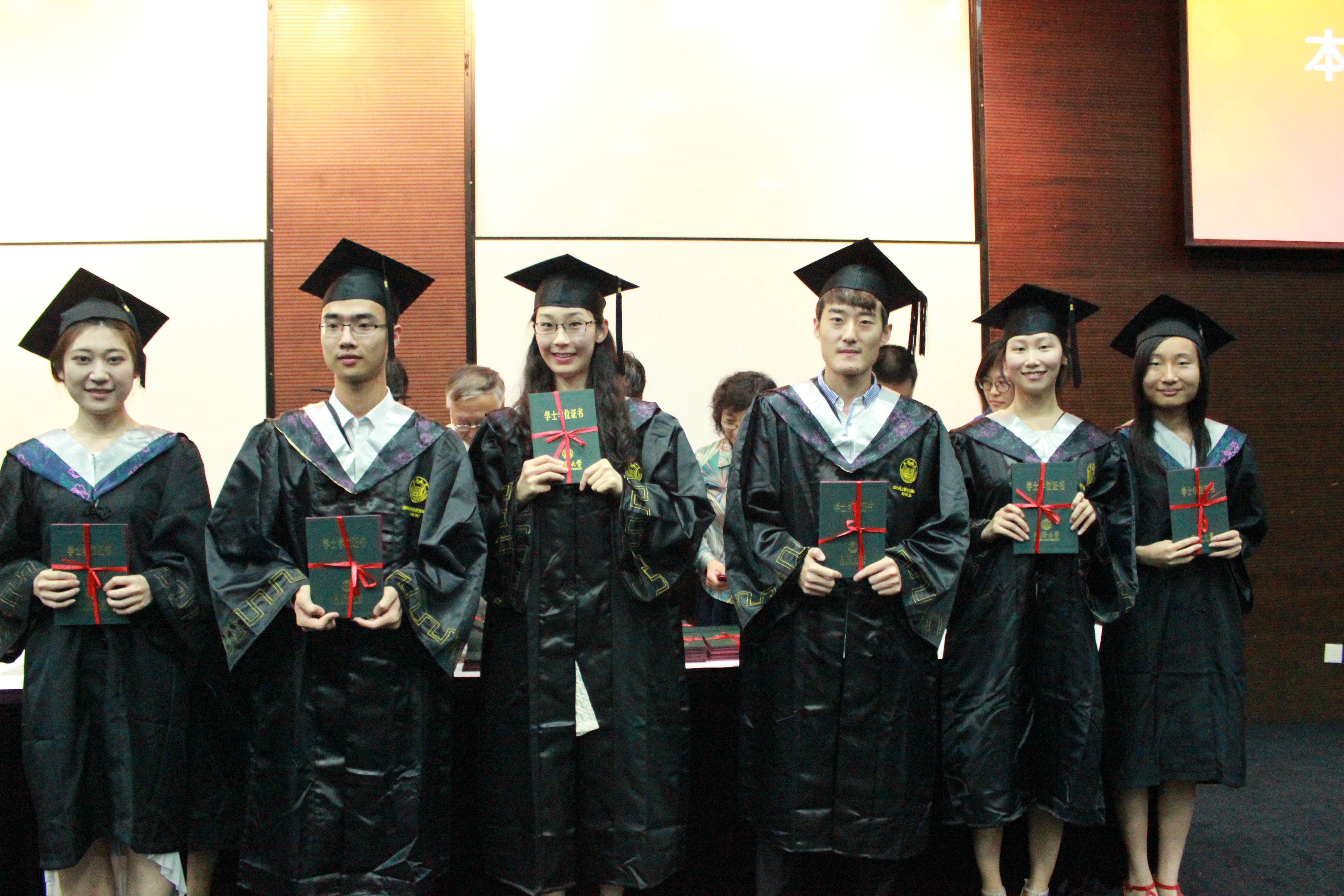 典礼上,博士毕业生代表、硕士毕业生代表和全体本科毕业生上台,从系领导和教授代表手中接过学位证书、毕业证书,接受老师们为他们拨正帽穗。