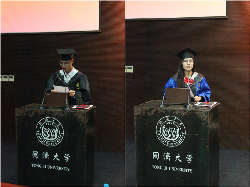 系党委书记李少华宣读获得上海市和同济大学优秀毕业生称号的学生名单,对他们的突出表现表示了充分肯定,并送上祝福,依次为他们颁奖。