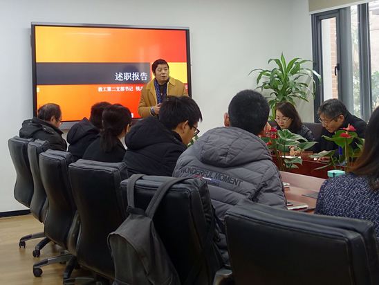 教工一、二支部的党支部书记方小春、钱志坚分别就支部工作进行述职,从思想建设、组织建设、作风建设、制度建设、党风廉政建设五个方面介绍了所在支部开展工作的基本情况和特色工作,以及存在的问题和下一步工作计划。其中,教工第一支部在注重思想建设,加强理论武装方面,教工第二支部在健全党组织,落实民主集中制,注重党员身份亮相方面特色鲜明。