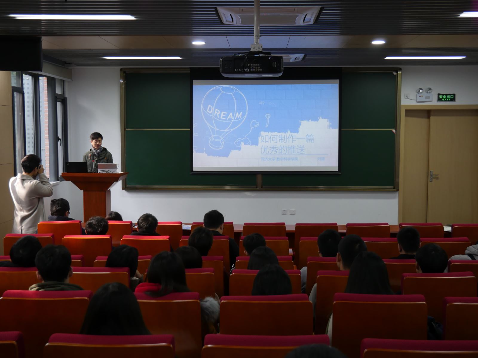 同济数学青年运营团队的刘潇同学给大家做题为“如何制作一篇优秀的推送”的新媒体工具方法培训;融媒体中心执行团队负责人康维同学为大家做融媒体中心工作实务培训。