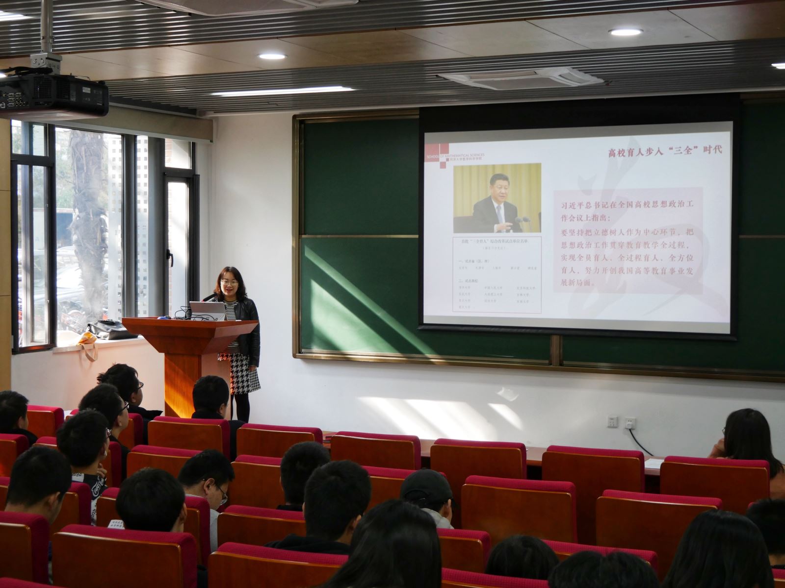 党委副书记赵盈老师发布了融媒体中心建设方案。她谈到在学校“三全育人”综合试点改革的背景下,我院整合各条线力量,在资源、人力、内容、平台等方面进行全面整合,实现“平台互融、资源通融、价值共融”的新型媒体中心。目前,融媒体中心构建了“核心团队+宣传员”的运营模式,建立了媒体平台运营管理团队和党支部、团支部、班级以及数院的学生团队和组织之间互通互融的工作机制。赵盈老师提出,融媒体中心具有五大功能,分别是网育功能、交互功能、对话功能、宣介功能和参与功能,希望能发挥五个方面的功能和优势,实现从“键对键”到“面对面”,最终实现“心贴心”,从而更好地形成网络平台上的融通,让网络成为同学们成长和发展的一部分。