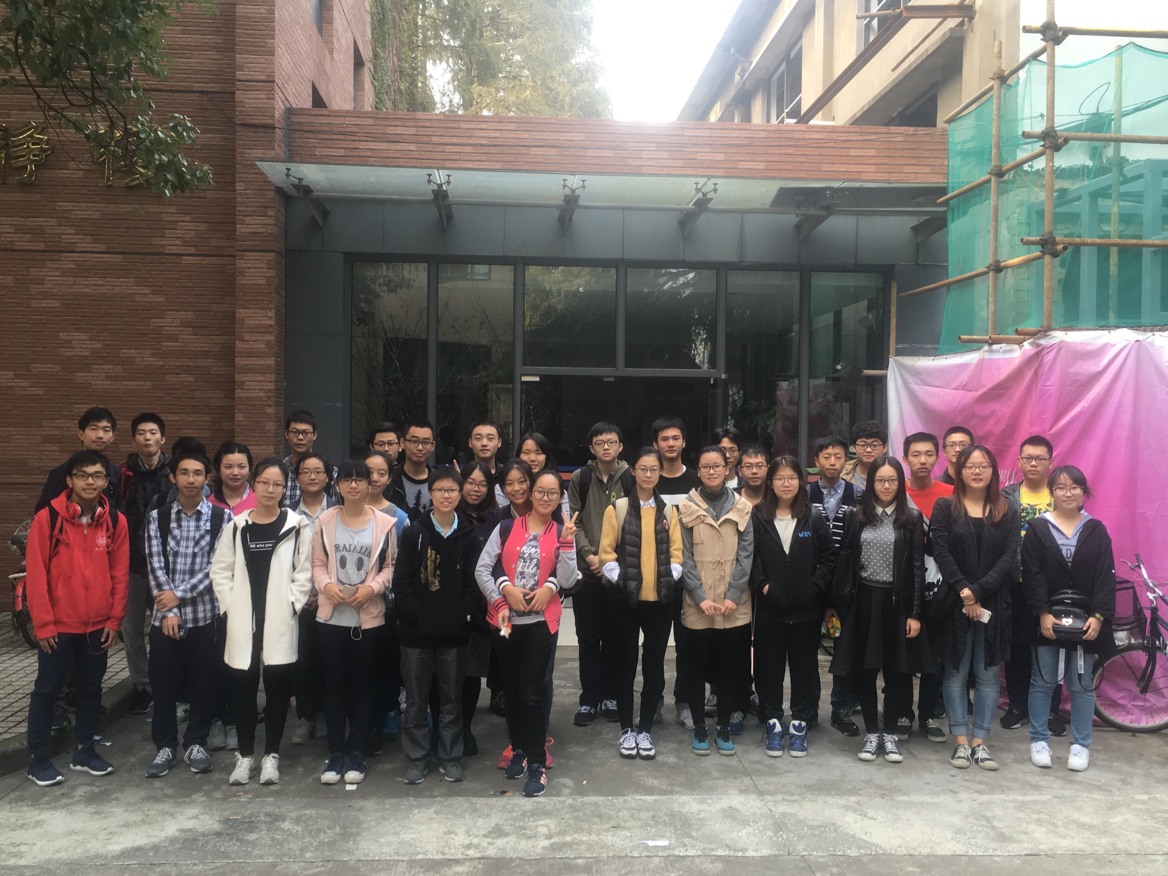 早上8时,同学们就已经在宁静楼前整装待发,在听完黄琨学长的简单动员并合影纪念后,大家带着激动的心情与激昂的斗志踏上了8公里的征程。为了使这次活动更加富有乐趣,同学们分成了三队,挑战三条不同的路线,并分别与各自路线上五个具有纪念意义或有趣生动的标志合影。