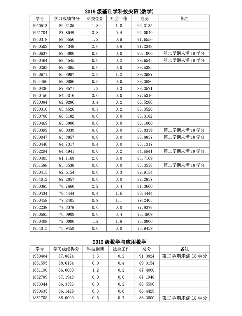 2021-2022学年本科生奖学金申请者初评分数公示(二)