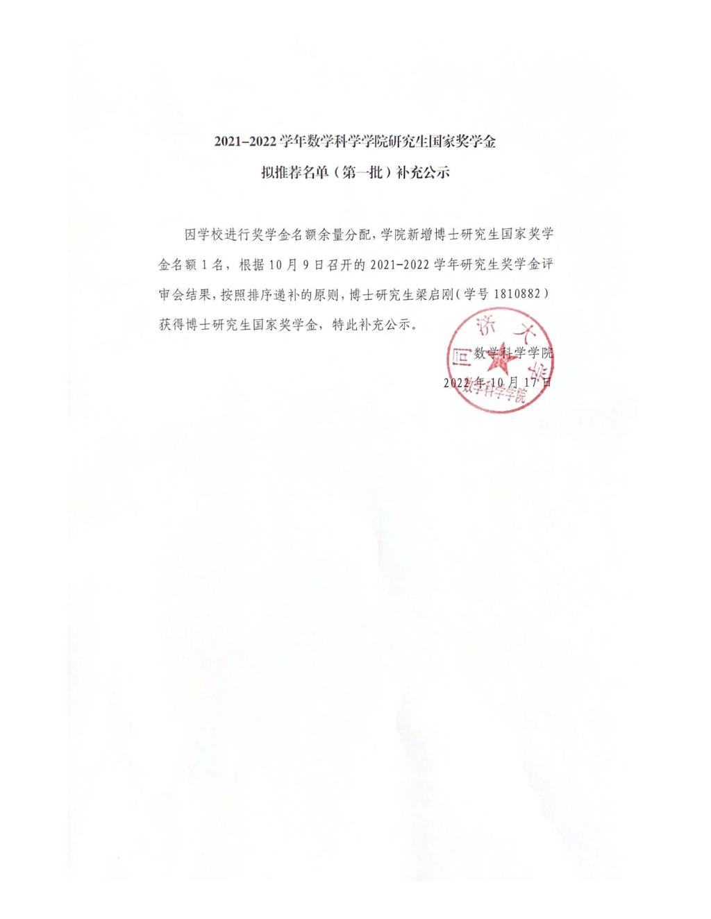 2021-2022学年欧洲足球比分直播 研究生国家奖学金拟推荐名单(第一批)补充公示