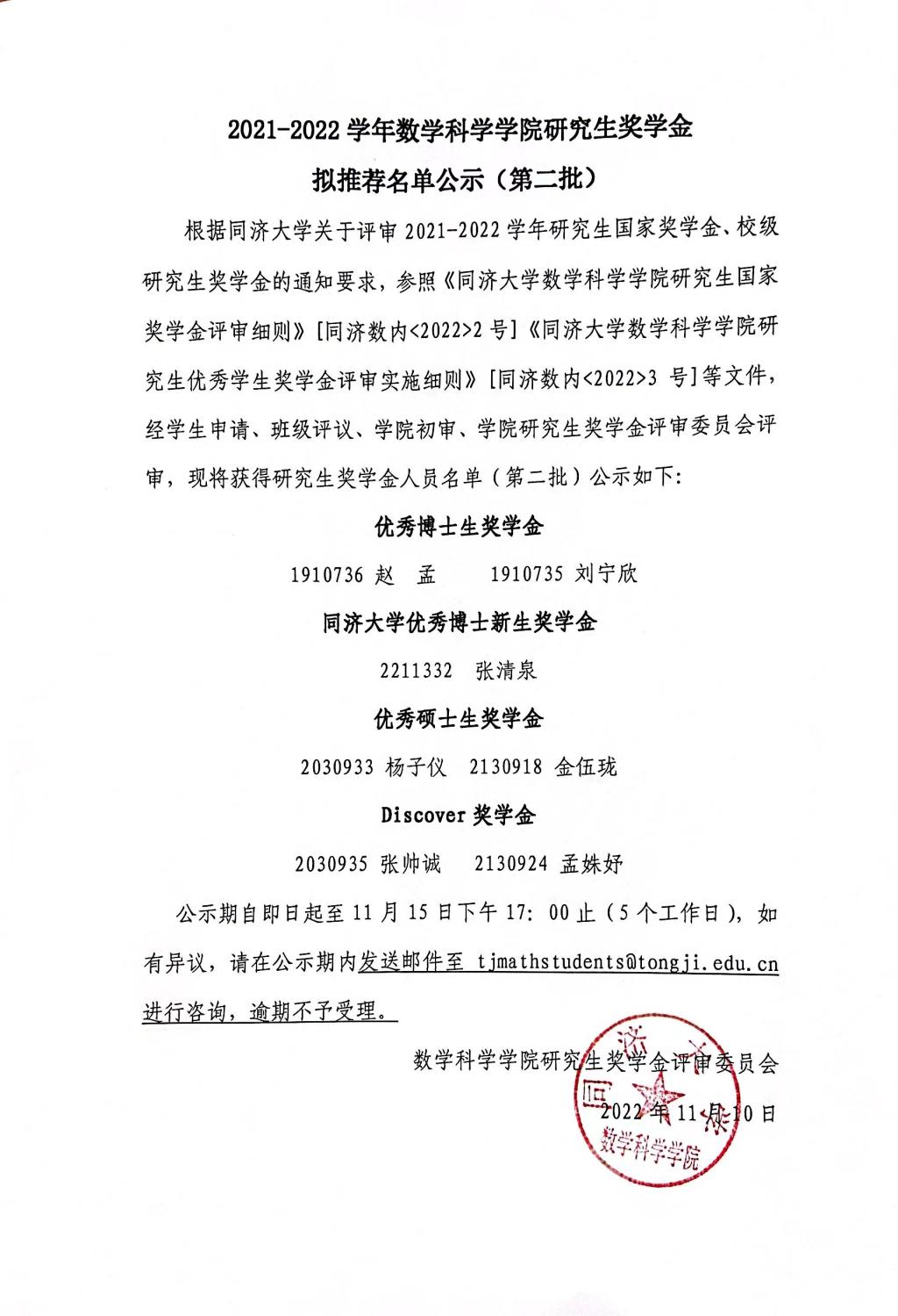 2021-2022学年欧洲足球比分直播 研究生国家奖学金拟推荐名单(第二批)