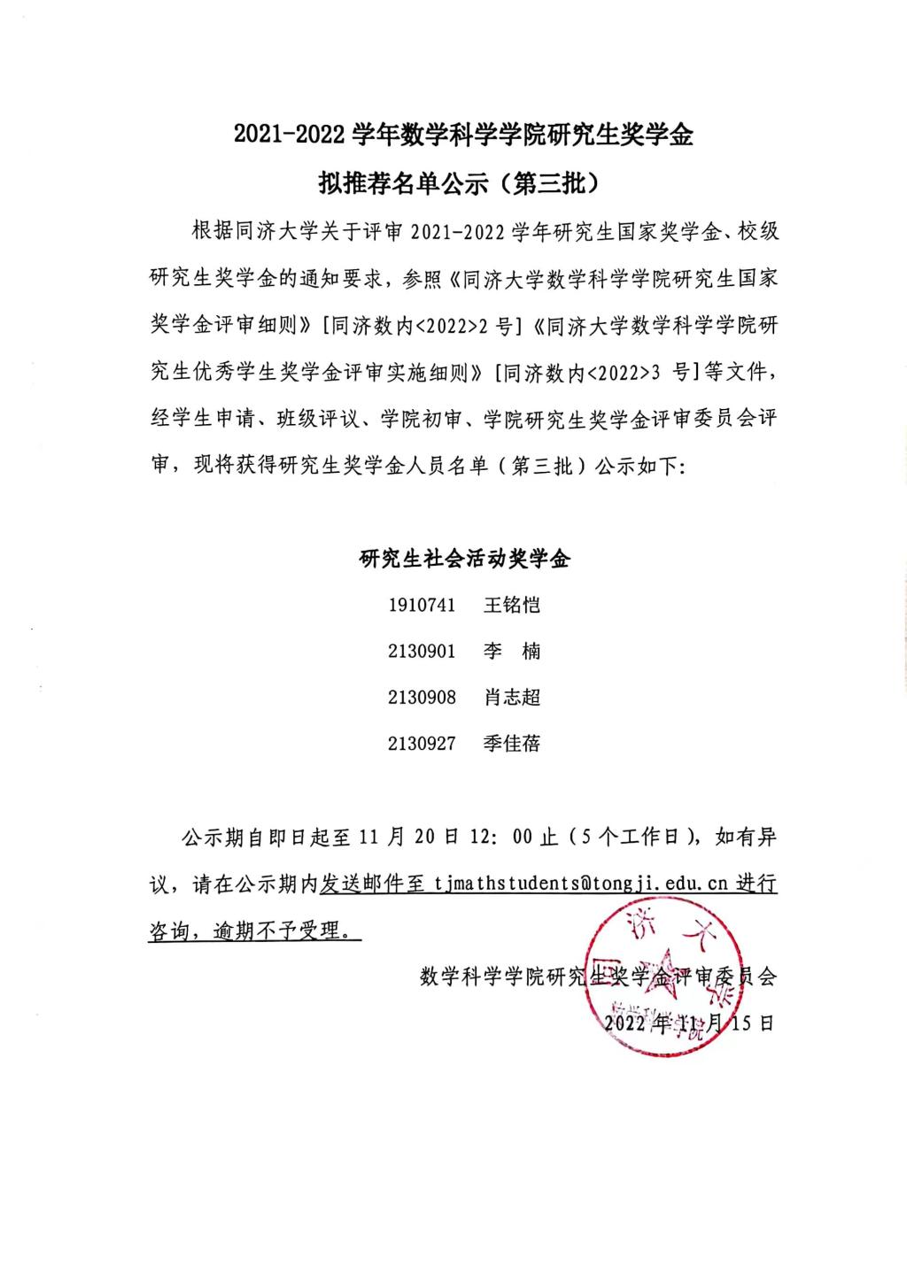 2021-2022学年欧洲足球比分直播 研究生国家奖学金拟推荐名单(第三批)公示