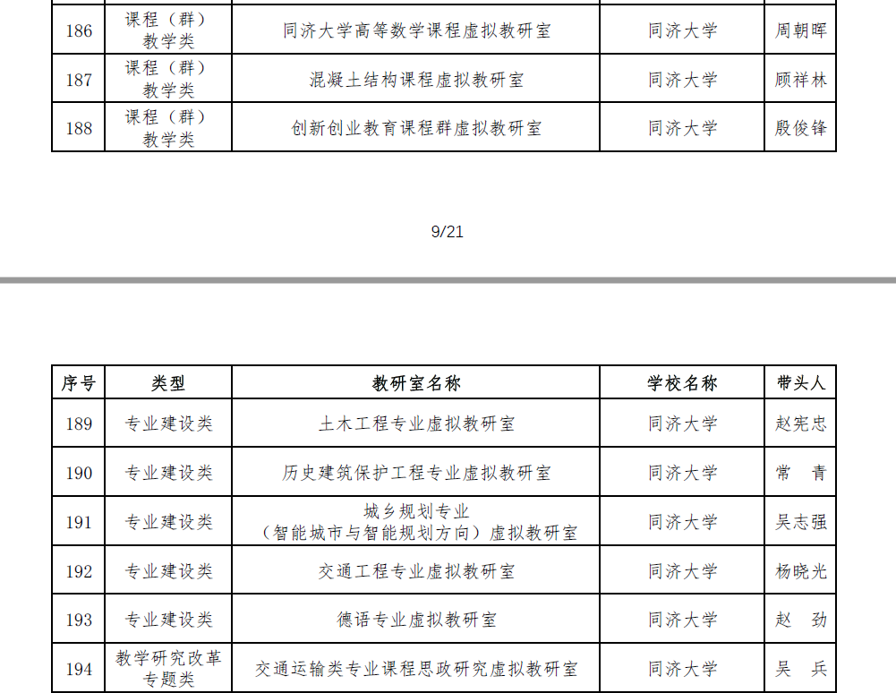 近日,教育部办公厅下发了《教育部办公厅关于公布首批虚拟教研室建设试点名单的通知》,认定了首批439个国家虚拟教研室试点建设点。我校共有9个项目入选,其中我院申报的“同济大学高等数学课程虚拟教研室”建设项目赫然在列。