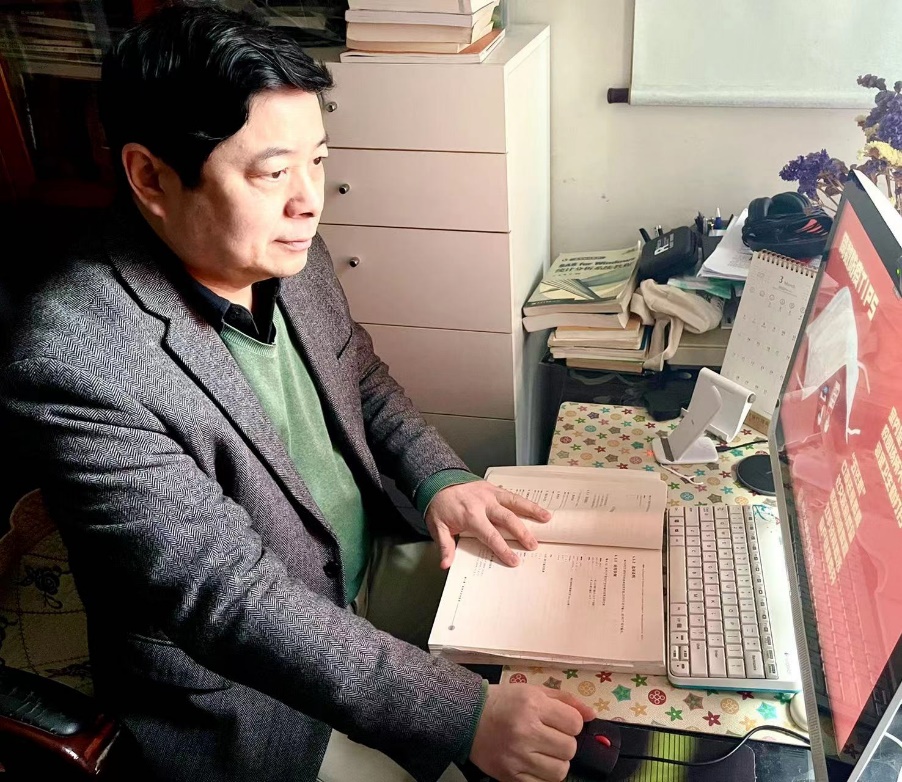 副院长李忠华朗朗的授课声传出,他一如既往保持着认真、严谨的治学态度,在直播课堂上用同学们熟悉的数学语言,对数学定理进行详细的分解和证明。