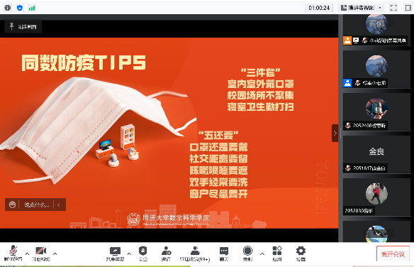 全体教师党员还主动在线上课堂给同学们“加点免疫餐”,使用统一的“防疫主题”背景幕布上课,课前用1分钟的小视频宣传防疫小常识,提醒同学们“三件套、五还要”,做好日常的健康防护……积极配合学校疫情防控的“大任务”,把防疫宣传的点点滴滴贯穿课上课下。