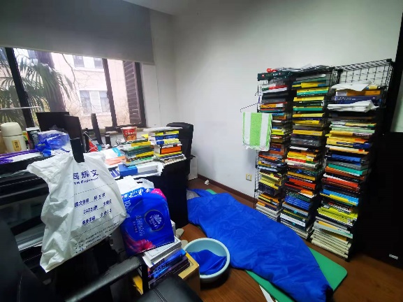 3月9日学校紧急实施封闭管理,近四十位教职工滞留学院各个楼宇。大家一时间没有什么准备,需要紧急调配物资,安排好老师们的临时住宿。教工支部党员、院办主任廖洒丽老师,作为大家眼中的“大管家”火速联系后勤部门,准备好了四十套洗漱用品,拿出库存的行军床,协调暂时空置的办公室,供老师们夜间休息,从了解和排摸老师们的需求到供给到位,她一直忙活到深夜。