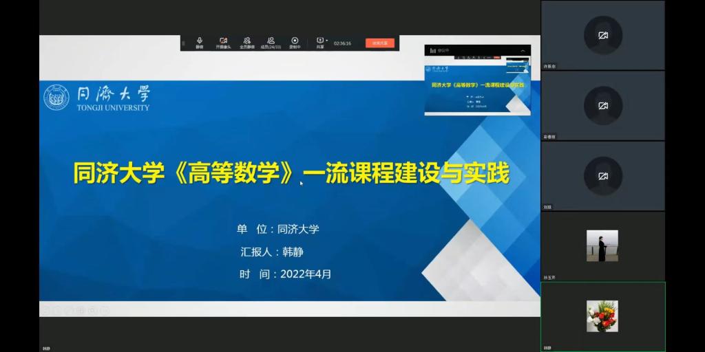 2022年2月,教育部办公厅公布全国首批虚拟教研室建设试点名单,确定首批虚拟教研室建设试点439个,其中课程(群)教学类237个,我院周朝晖教授牵头申报的同济大学高等数学课程虚拟教研室获批建设。4月17日上午,虚拟教研室成员高校交流会议在虚拟教研室信息平台上成功召开。同济大学、厦门大学、兰州大学、宁夏大学、成都理工大学、井冈山大学、上海电力大学的负责人、成员老师等共计30余人线上参会。