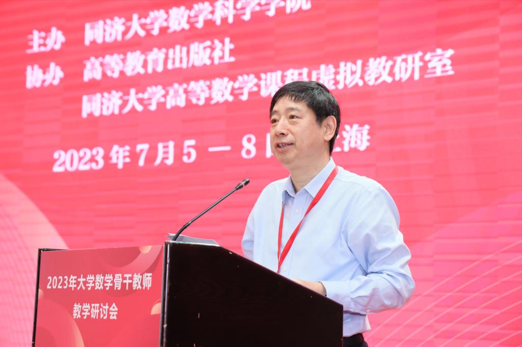 阳化冰代表高等教育出版社致辞。他对同济大学大学数学教材给予了高度肯定,表示同济版大学数学经典教材始终紧扣人才培养时代脉搏,秉持高质量、融入新形态,持续修订更新,焕发出蓬勃生机,经过几代人的奋斗和传承,已经形成了使用面广、影响力大的系列品牌教材。他指出,在加快推进教育强国建设的大背景下,国家关于高等教育课程教材建设的重点举措不断出台,同时,以生成式人工智能为代表的新技术对教育、对学习带来了新一轮的影响。高校教学改革和课程教材建设又站在了一个新的起点上。包括“大学数学”课程在内的教学改革和课程教材建设是否应该回应好拔尖创新人才培养和教育强国建设的需要,值得深入思考研究和交流。希望研讨会能帮助大家把握新形势下教改方向,提升教学能力和水平。