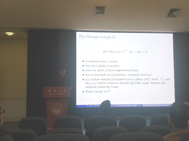 潘一飞教授报告《Optimal Sobolev regularity of d-bar on the Hartogs triangle》 |