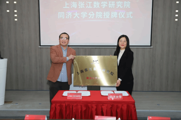 党委书记李静茹代表双方共同揭牌并签署共建合作协议,上海张江数学研究院同济大学分院正式成立。