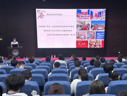 为了进一步发挥学生党员的先锋模范作用,激励广大学生向优秀党员看齐,学院还邀请了本科生党支部在学术和学生工作领域表现突出的的两名学生党员作为嘉宾,为同学们分享自己的入党初心和切身感悟,通过榜样的视角和朋辈的力量,以分享经验、激发斗志为方式方法,让更多新生能够学有榜样、心有力量、行有方向,以奋发昂扬的姿态解锁大学生新身份。