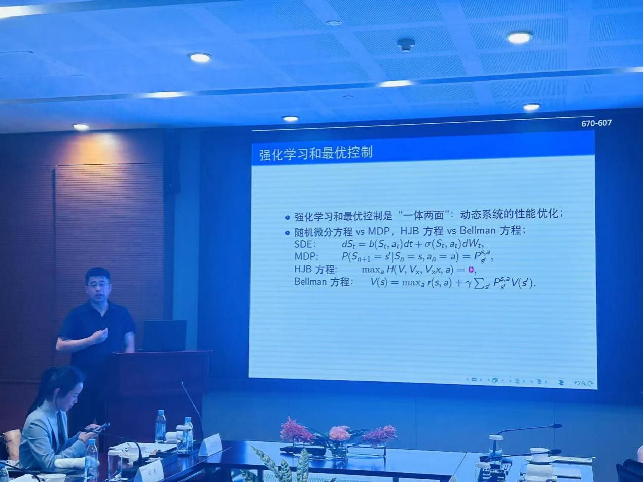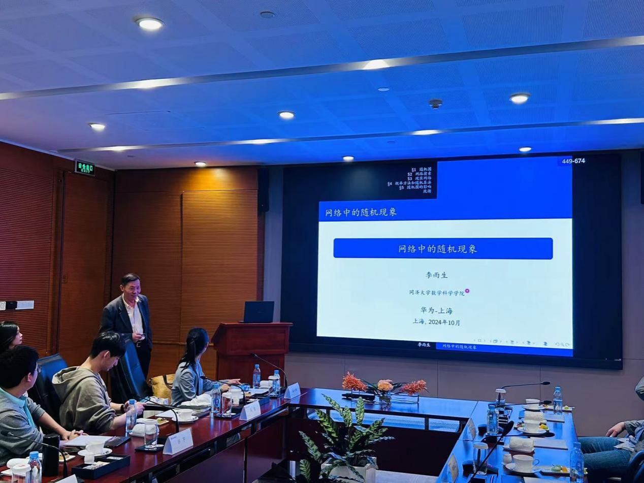 与此同时,学院部分教师还与华为上海研究所的专家们进行了workshop研讨。李雨生老师进行了题为“网络中的随机现象”的分享,重点介绍了社交网络中的一些现象及其数据分析方法。董玉超老师进行了题为“随机控制中的强化学习方法”的分享,介绍了关于利用强化学习解决一些随机最优控制问题的工作。