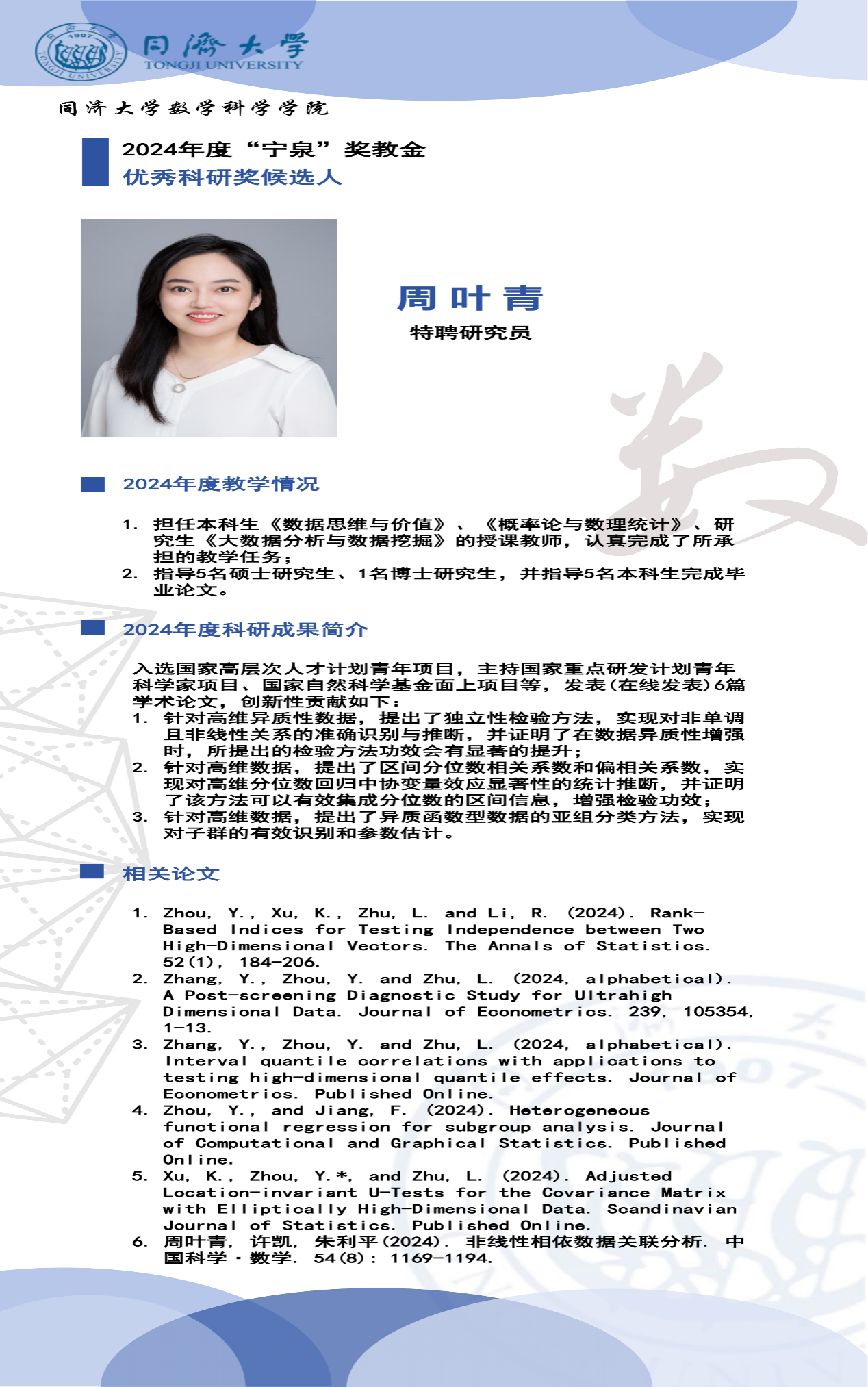 “宁泉”奖教金学院优秀奖获奖人员简介】