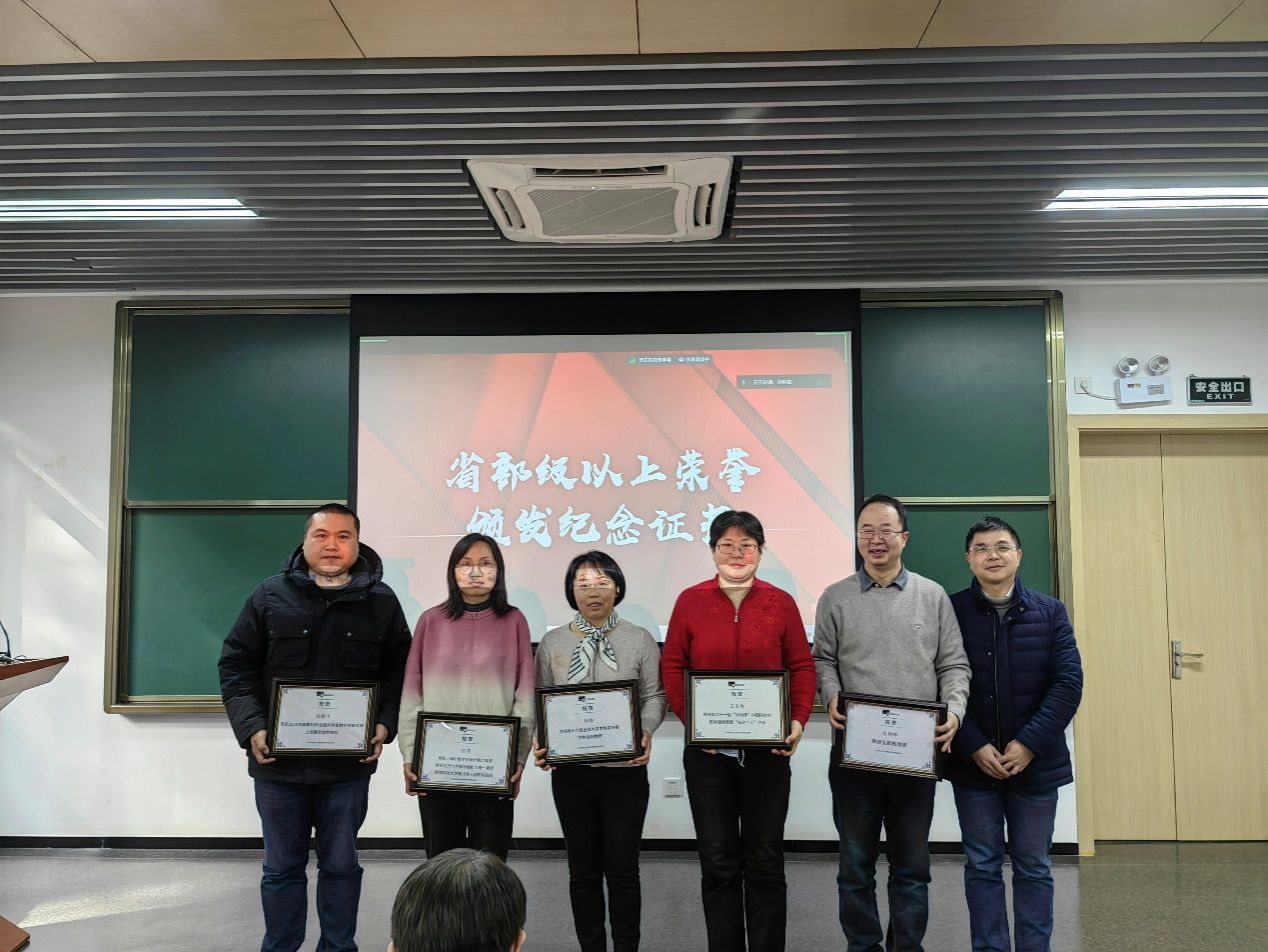 许学军副校长为“宁泉”奖教金获奖者颁发证书。李忠华副院长和余斌副院长为省部级及以上获奖教师颁奖纪念证书。