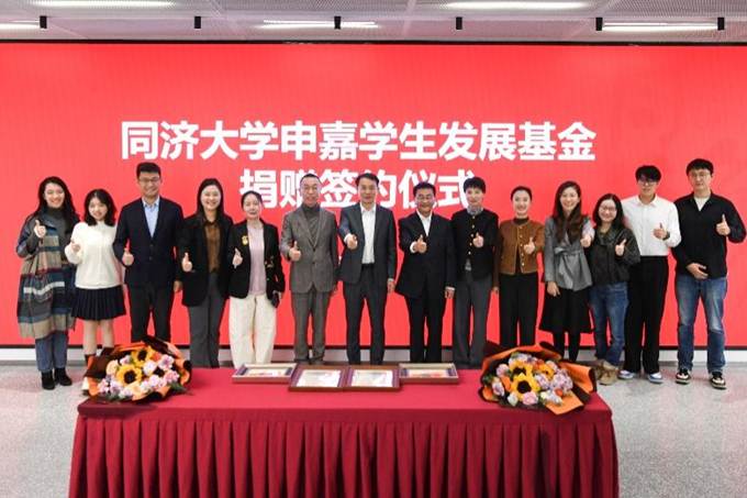 在现场嘉宾的共同见证下,签约仪式顺利举行,现场气氛温馨而热烈。据悉,申嘉学生发展基金将设立“启航”“启明”“扬帆”三大专项奖学金,分别对应海外研修、短期访学、国际会议三类需求,为同济数学学子对接国际前沿学术资源、参与跨文化学术交流、锤炼专业实践能力提供专项支持。