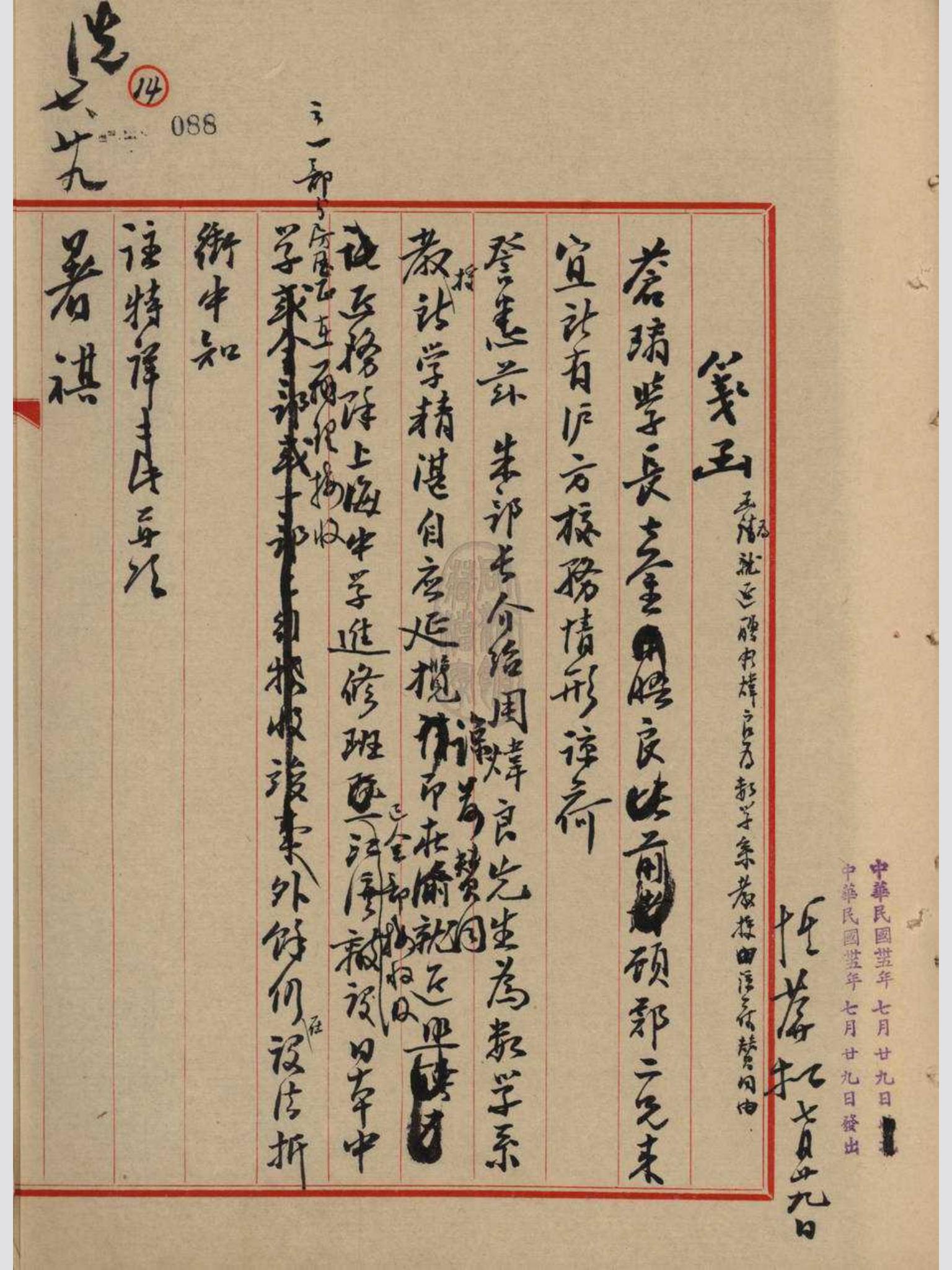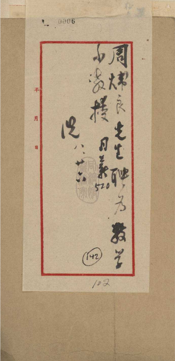 (聘周炜良先生为数学系教授笺函内页留存 同济大学档案馆藏)