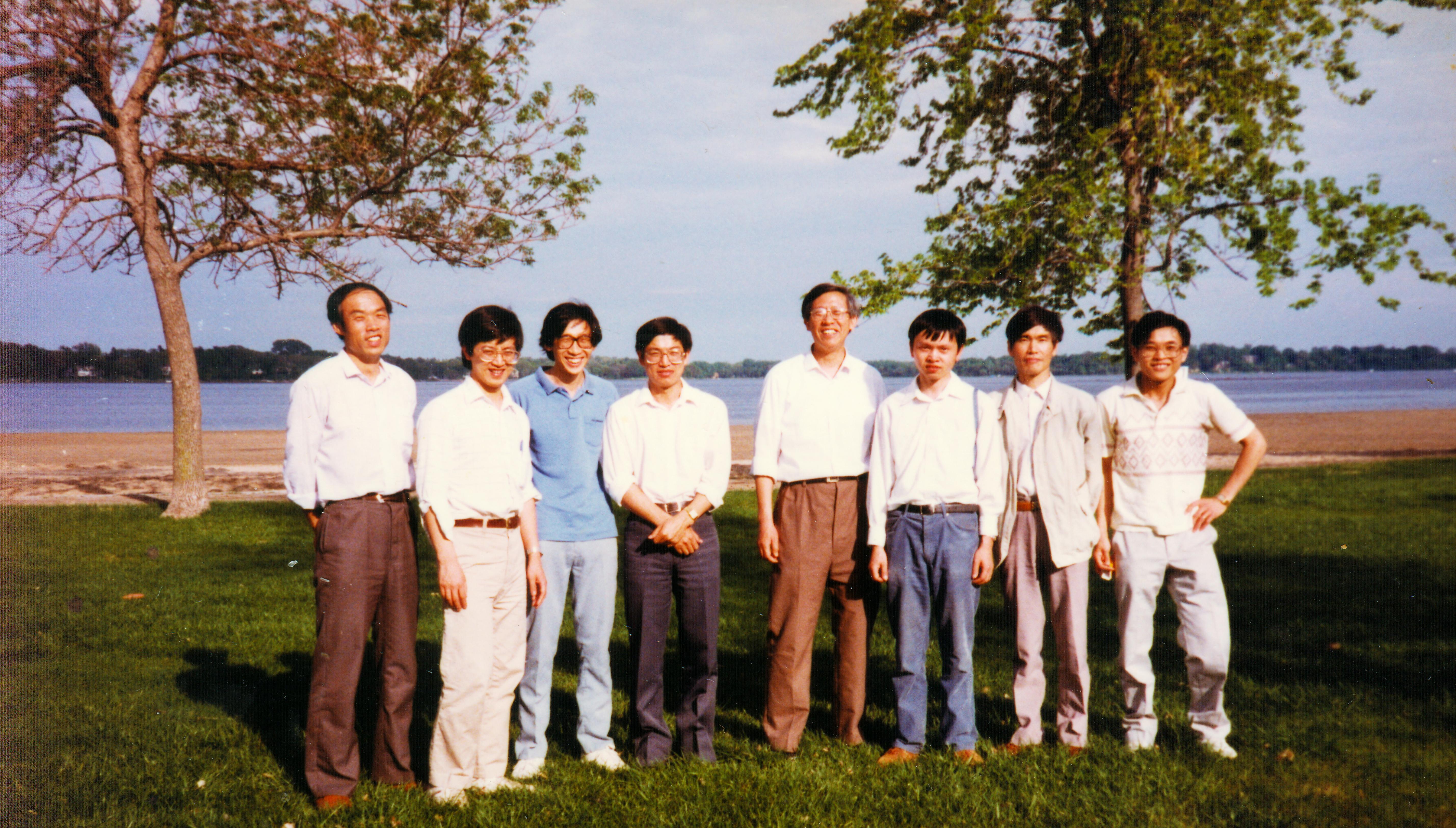 (姜礼尚和他的学生参加Friedman 在美国明尼苏达参加IMA举办的”自由边界年“活动:从左至右:易发槐、王立河、张建华、尹洪明、姜礼尚、胡钡、黄少云、陈新)
