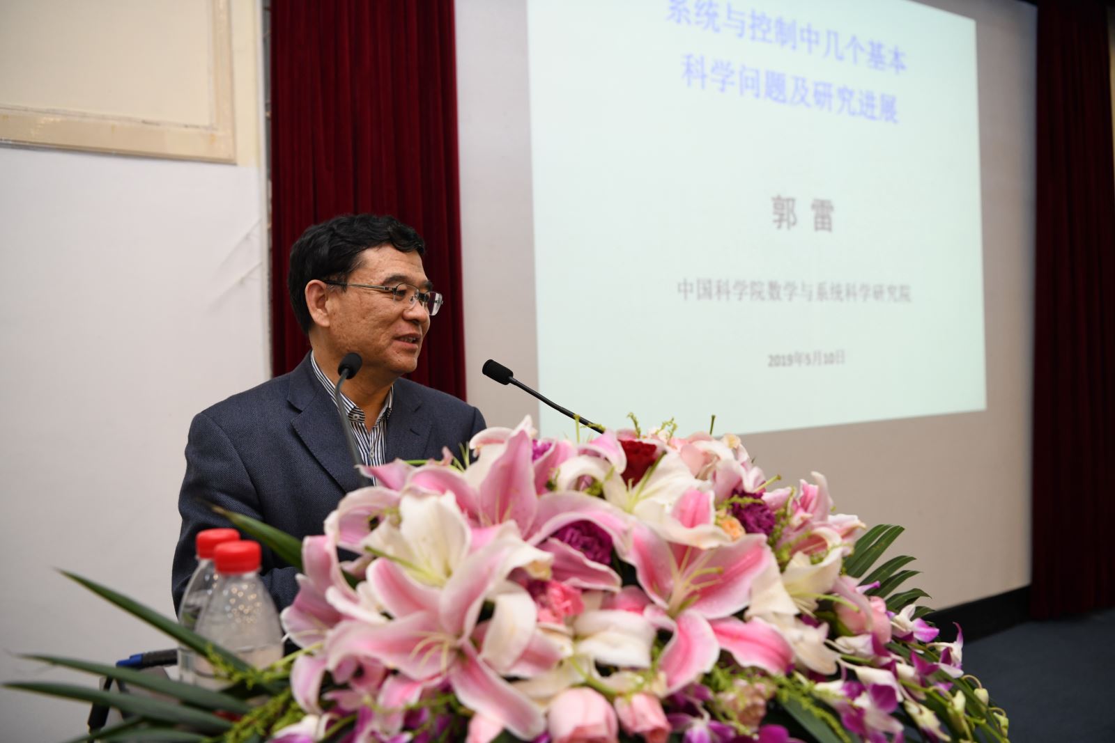 讲座开始,陈杰校长介绍了本次讲座的主讲人郭雷院士。郭雷院士长期从事控制论与系统理论研究,是中国科学院院士、第三世界科学院院士、瑞典皇家工程科学院外籍院士、中国科学院国家数学与交叉科学中心主任、第十三届全国人民代表大会常务委员会副秘书长,在系统与控制科学若干核心基础理论问题上作出了根本性贡献。