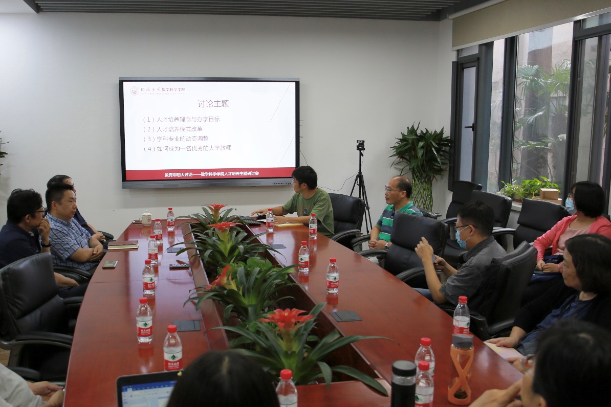 与会老师围绕人才培养理念、人才培养模式、学科专业建设,结合自身的教学、科研经验展开热烈的讨论和交流,就教学管理、大类培养、课程设置、课程考核、学生实习、教师专业发展、学科人才队伍建设等角度发表了意见,提出了建议。鉴于数学学科的特殊性,部分老师建议学校应在招生、人才培养上赋予学院更多的自主权,为数学人才培养提供良好的生源基础;在数学强基人才的培养上,专业学院和交叉学院应针对如何进行强基人才培养进行探讨和论证,确保在教学内容、技术手段等方面能够充分保障交叉培养模式的开展。