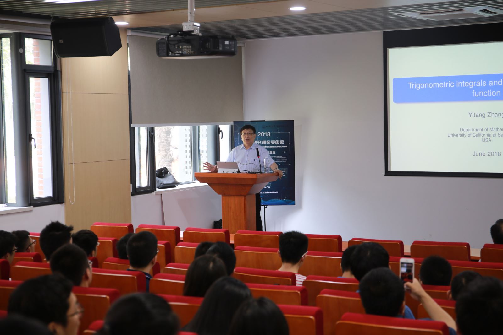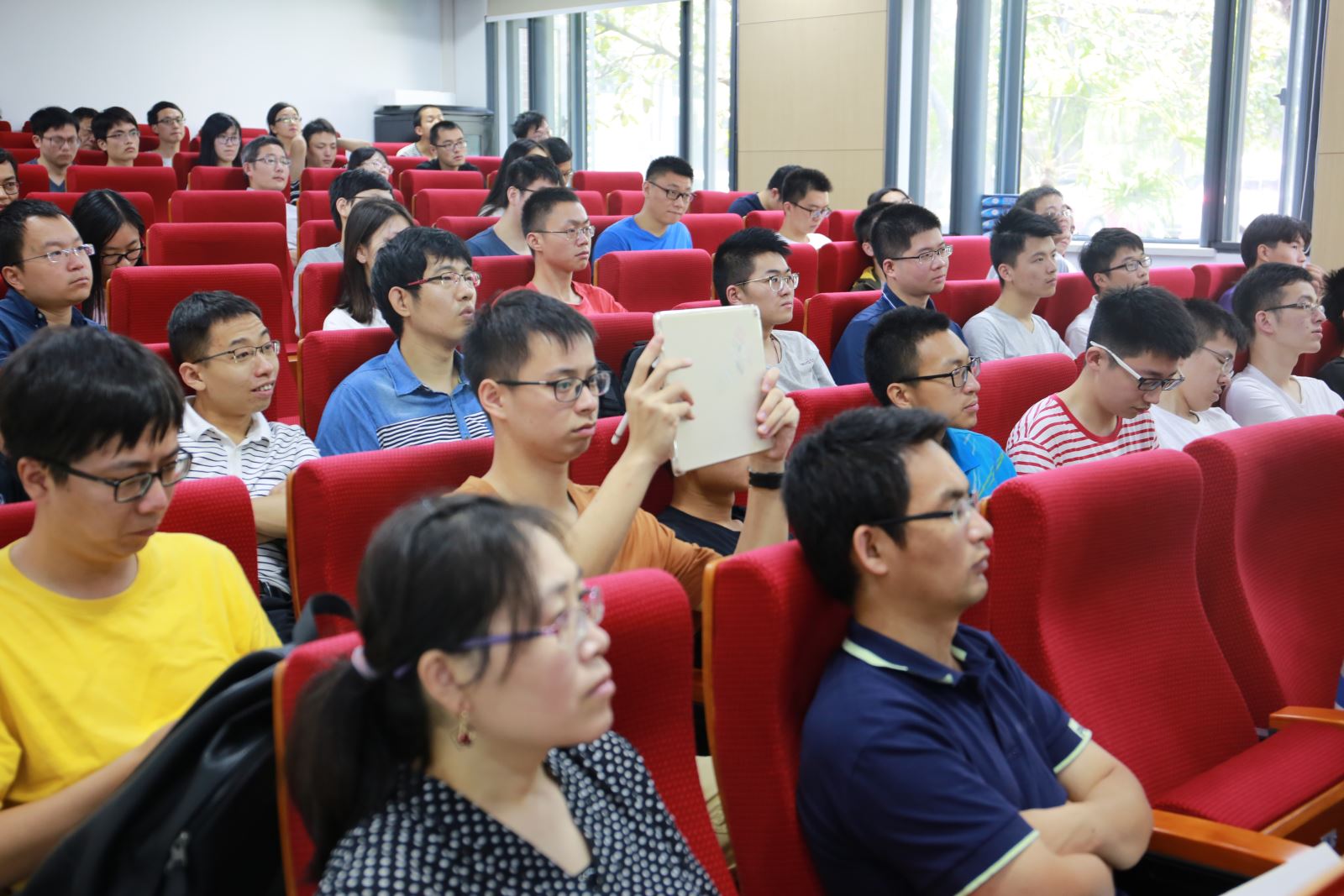 25日上午10点,张益唐教授在致远楼108报告厅为我校师生带来一场题目为《三角积分和黎曼函数》的精彩报告。虽临近期末考试,但同学们热情不减,现场听众满堂,一些复旦和上海大学的师生也慕名前来。报告由我院副院长潘生亮教授主持。张益唐教授从三角积分谈起,介绍七大千年数学难题之一的黎曼猜想的新方法,新进展,讲解深入浅出,生动形象,引起师生们的极大兴趣。