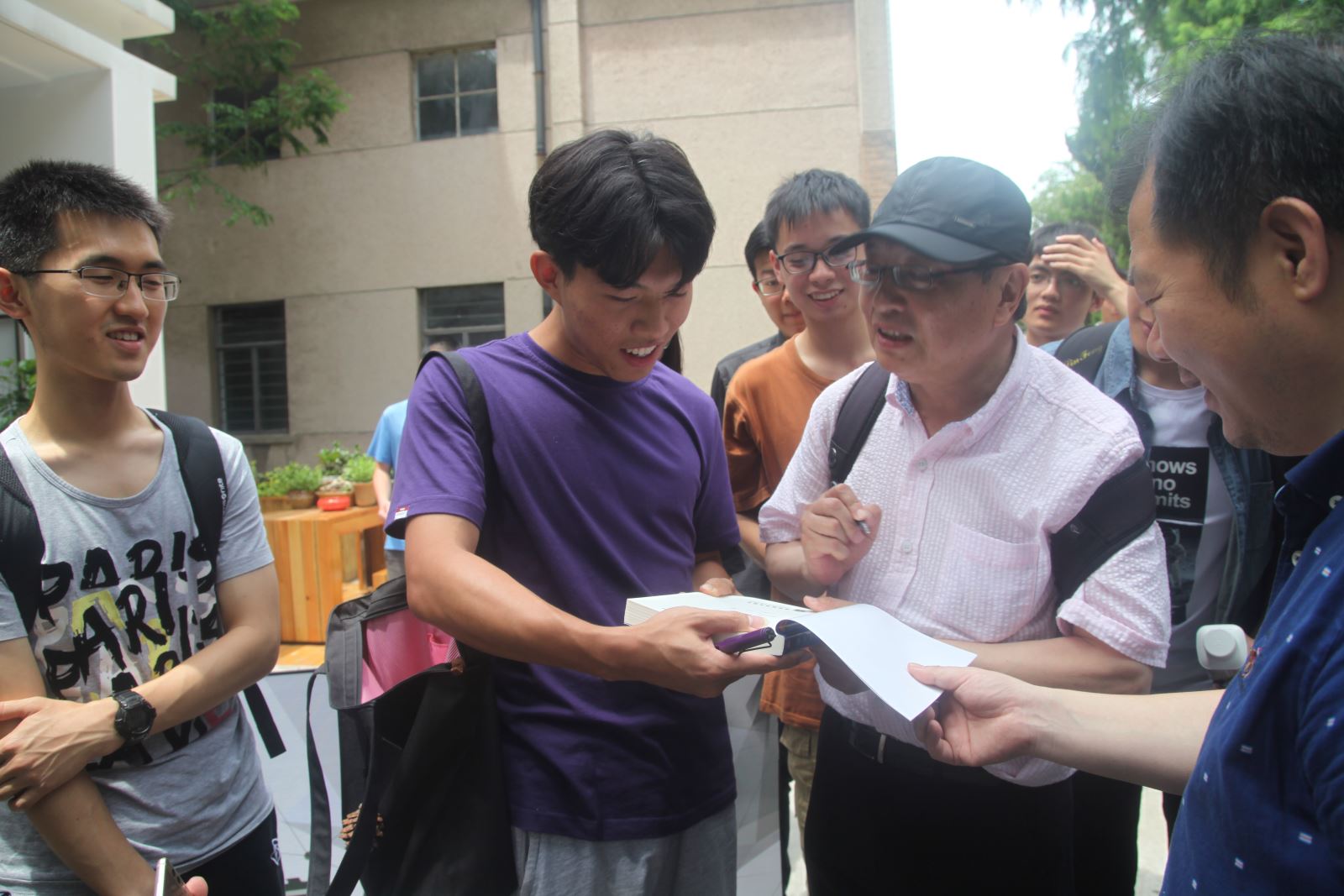 交流会结束后,有同学兴奋得拿着课本请张益唐签名留言。此次交流会,为同学们提供了一个近距离接触数学家的机会,让同学们了解了更加真实的张益唐,领会到数学家热爱科学、追求真理的精神以及坚持不懈、勤奋刻苦的品质。