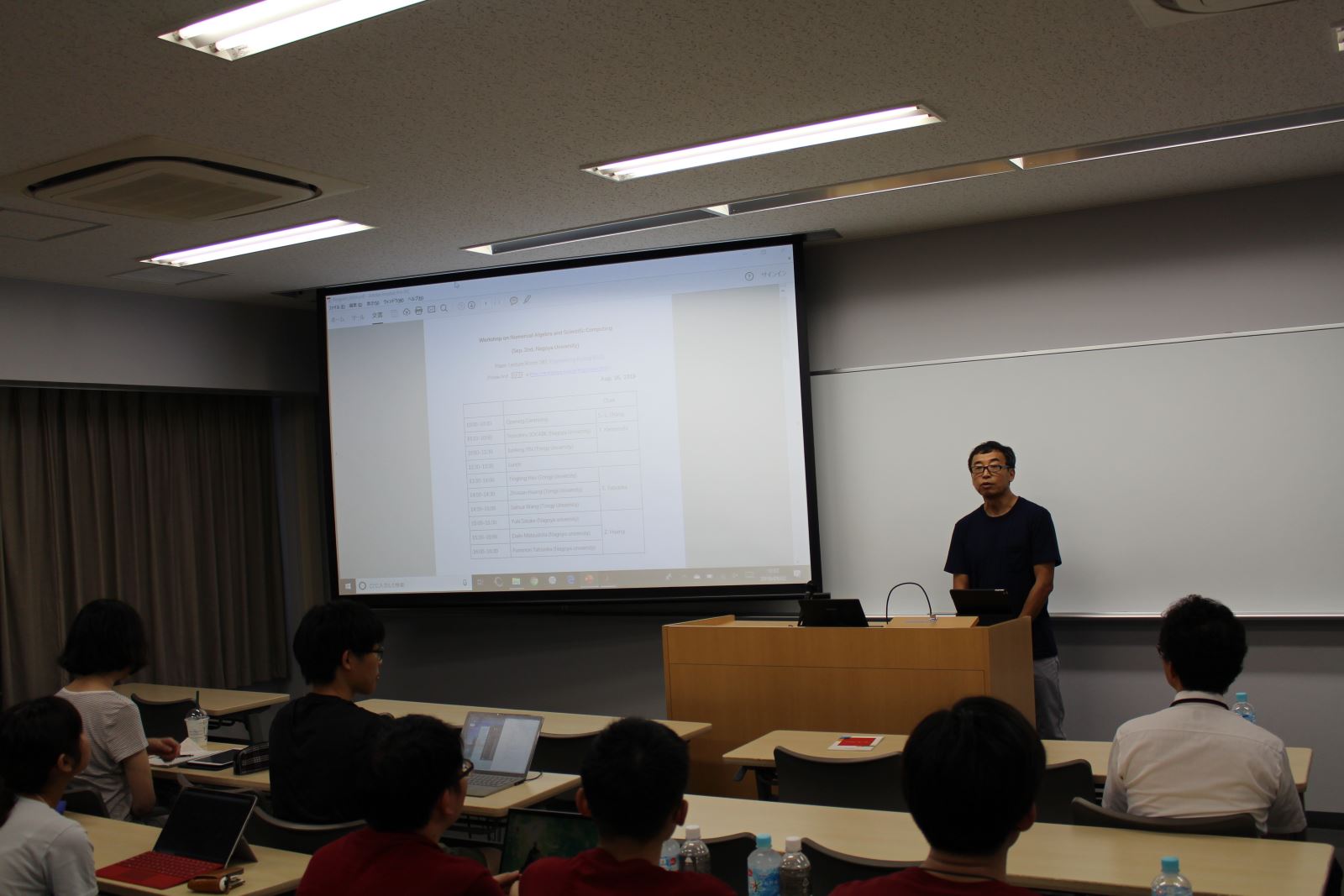 9月2日上午10点,由同济大学和名古屋大学联合举办的“数值代数与智能计算”研究生国际学术论坛在名古屋大学工学部三号楼会议室正式拉开帷幕。此次论坛以口头报告和海报展示等形式由两校师生代表分别向与会学者展示展示两校在计算数学领域的研究热点和最新进展,促进前沿研究交流、带动学科交叉。
