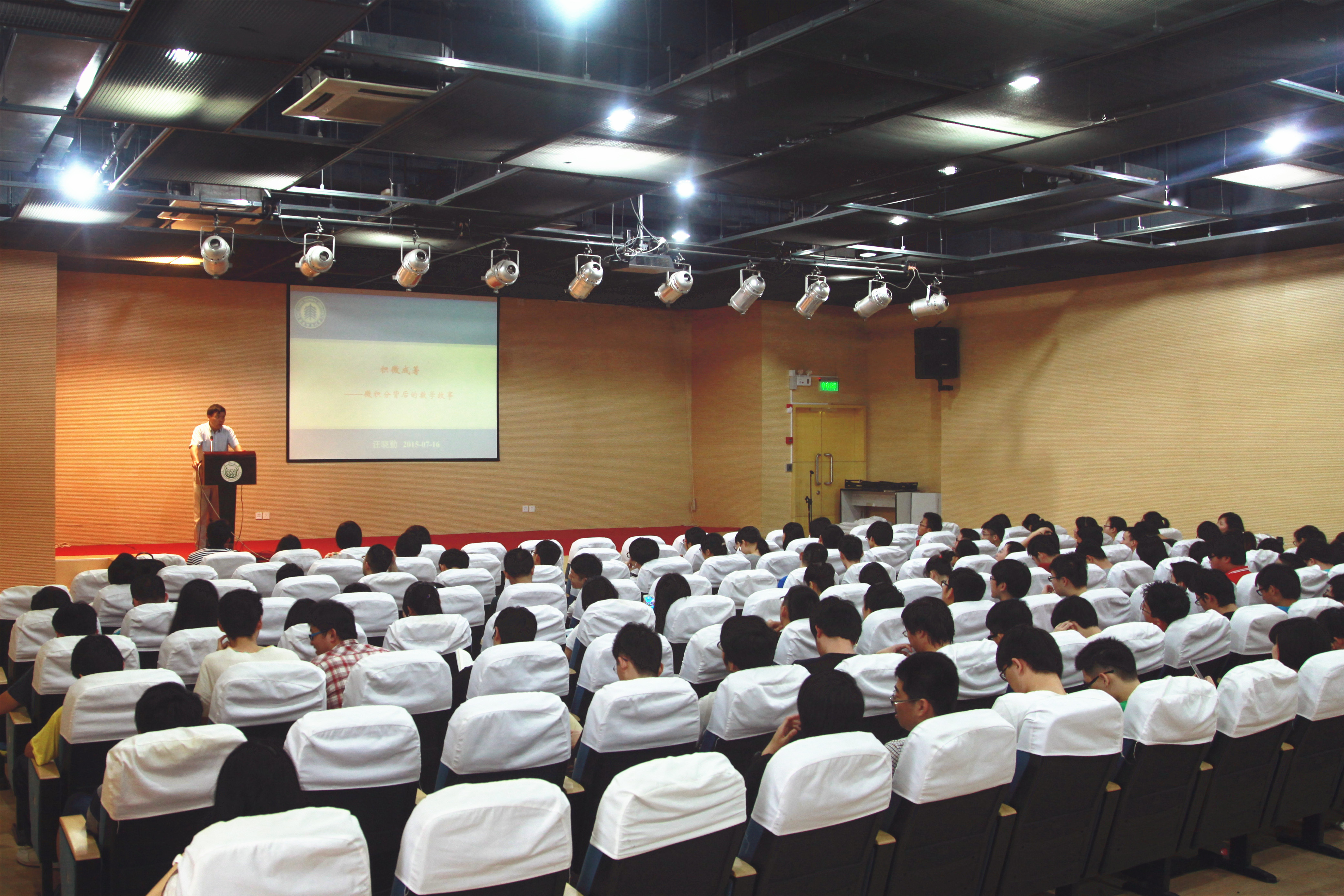 7月16日的下午,数学系首届“静远书香”读书活动之数学文化讲座,在经纬楼三楼报告厅如期举行。此次讲座邀请全国数学史学会副理事长、全国数学教育研究会副理事长、华东师范大学数学系博士生导师汪晓勤教授担任嘉宾。13级和14级百名数学学子齐聚一堂,在汪老师的带领下,共同感受数学背后的文化魅力。