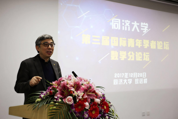 同济大学副校长顾祥林教授首先致辞。顾校长对所有远道而来参加本次论坛的青年学者表示热烈欢迎,他指出,数学学科是一切工科的基础,是支撑同济学科发展的重要力量。同济大学非常关注学科发展,会借助双一流学科建设的契机不断加强学科建设,努力为各类人才创造融洽的学术氛围和适宜的工作环境。举办此次论坛的目的正是为了汇聚海内外的青年才俊,齐心协力推动同济数学更快、更好发展,同时通过学科交叉、理工并进,夯实基础、发挥优势、继往开来。同济数学有着悠久的历史,学校热切欢迎优秀的青年学者能来到同济工作,学校将会不遗余力地予以帮助和扶持。