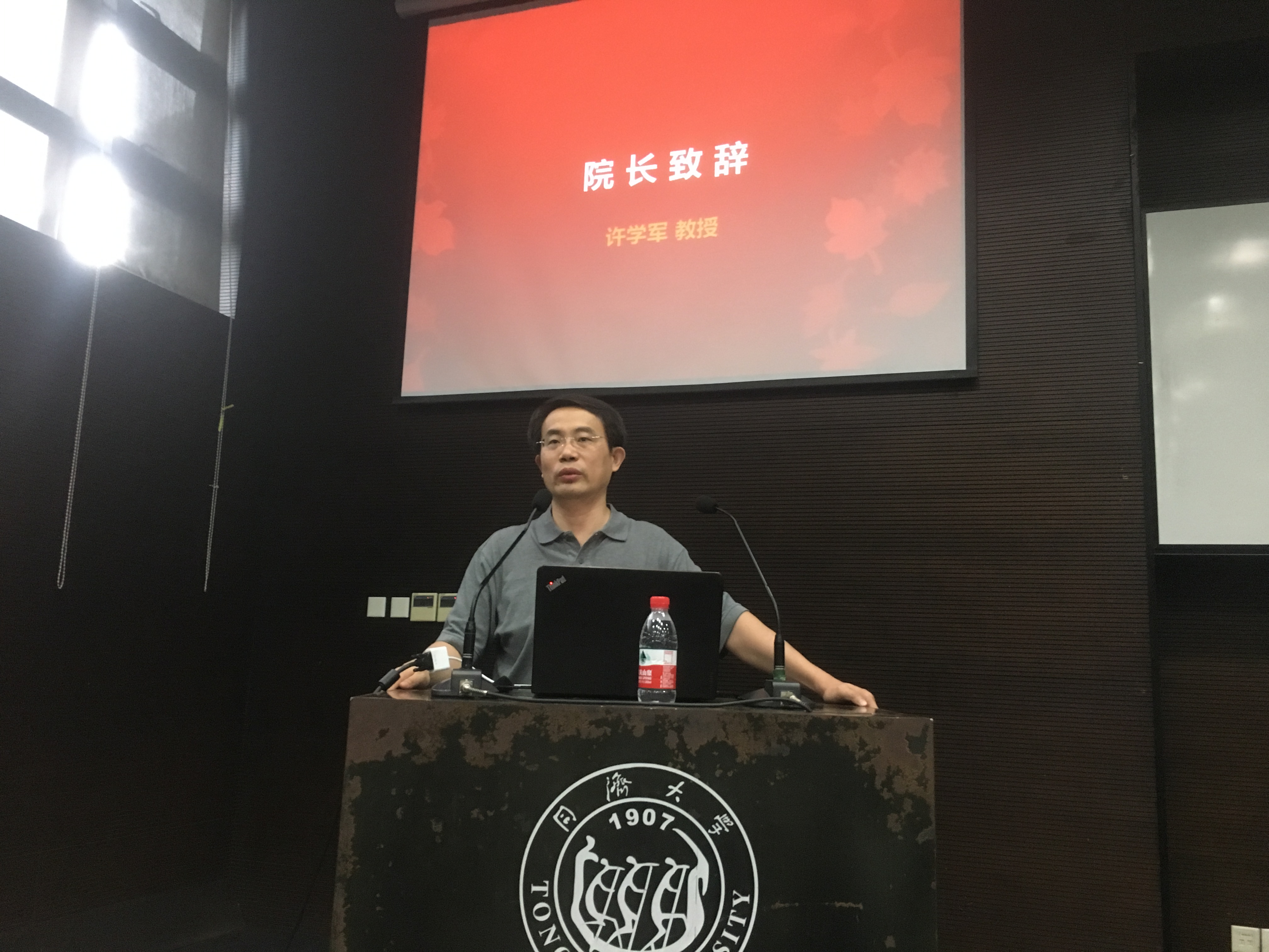 院长许学军致欢迎辞。他首先对同学们的到来表示热烈欢迎,并向同学们提出五点期望:第一,珍惜时光、切莫松懈,他强调,数学学习注重基础、环环相扣,同学们必须脚踏实地、打好基础;第二,追求卓越、不言放弃,他鼓励大家在面对挫折与难题时要坚持拼搏,刻苦钻研,充满信心;第三,格物致知、宁静致远,他希望同学们秉承同济数学人的精神,积极探索真知;第四,培养兴趣、锻炼思维,他表示同学们需要在不断学习的过程中培养兴趣,逐渐培养数学思维模式,提升逻辑思考能力;第五,志存高远、提高科研品味,他用“法乎其上,得乎其中,法乎其中,得乎其下”的古语激励大家将目标定位一流、在心中怀揣梦想。最后,许院长再次强调学术诚信及科研创新的重要性。