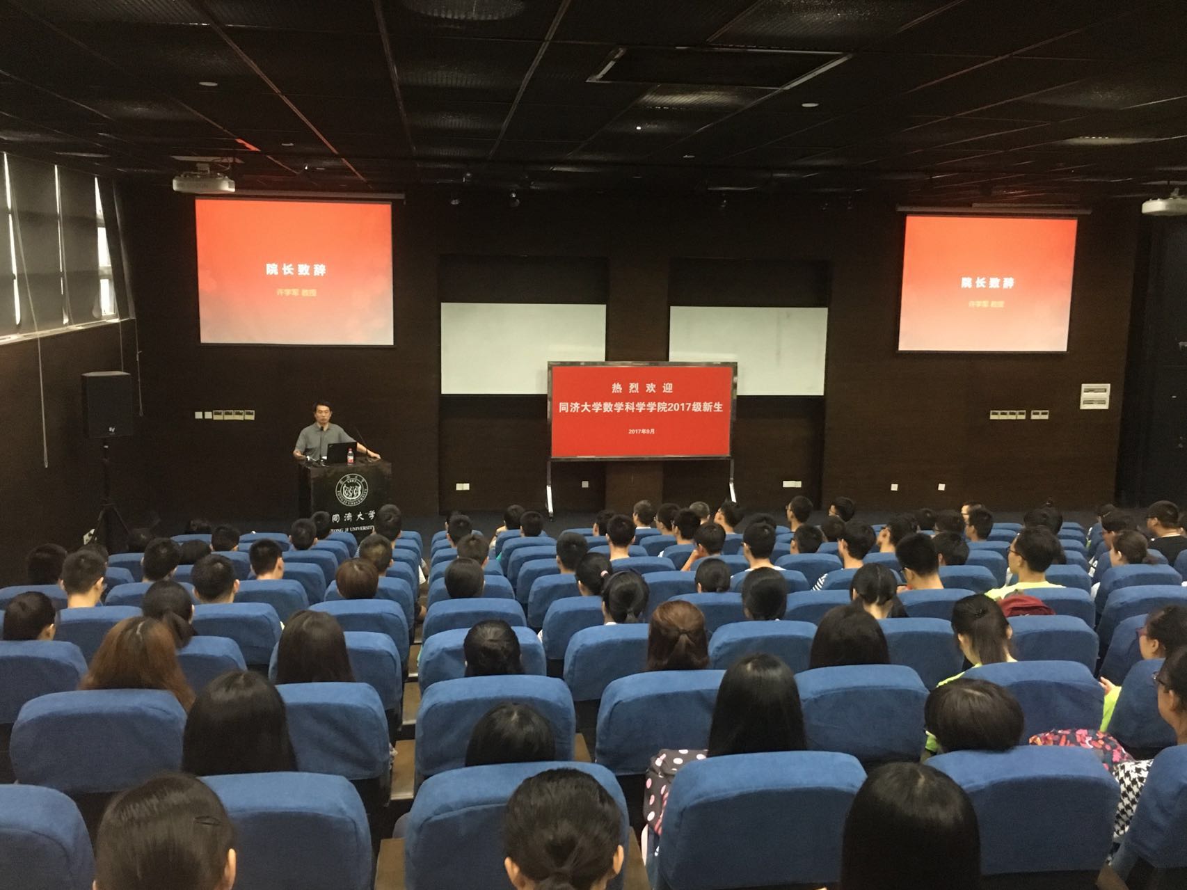 2017级迎新大会在中法中心C201隆重举行。许学军院长向同学们提出五点期望:第一,珍惜时光、切莫松懈,他强调,数学学习注重基础、环环相扣,同学们必须脚踏实地、打好基础;第二,追求卓越、不言放弃,他鼓励大家在面对挫折与难题时要坚持拼搏,刻苦钻研,充满信心;第三,格物致知、宁静致远,他希望同学们秉承同济数学人的精神,积极探索真知;第四,培养兴趣、锻炼思维,他表示同学们需要在不断学习的过程中培养兴趣,逐渐培养数学思维模式,提升逻辑思考能力;第五,志存高远、提高科研品味,他用“法乎其上,得乎其中,法乎其中,得乎其下”的古语激励大家将目标定位一流、在心中怀揣梦想。