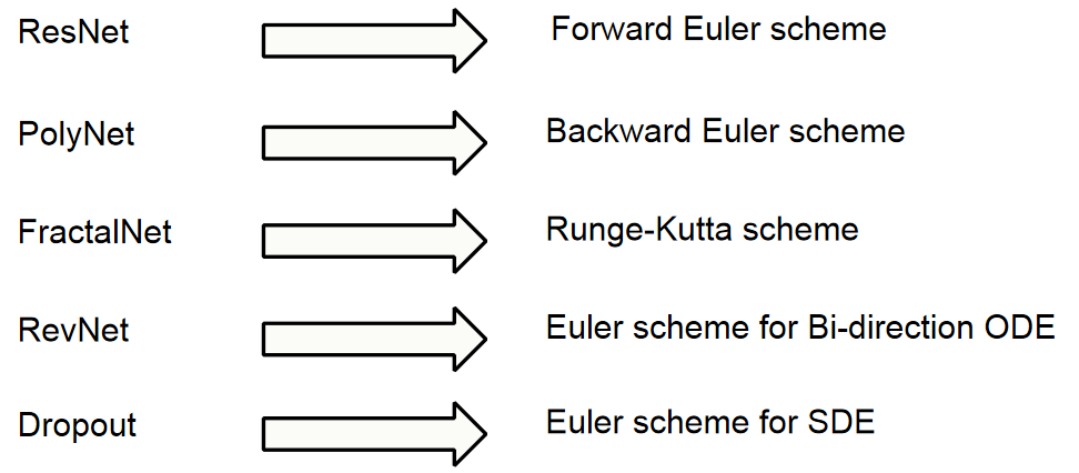 2016年有学者发现深层神经网络的结构也可以用微分方程来解释和分析,从而掀起了寻找不同神经网络与已知微分方程之间相互关系的研究热潮,事实上也确实取得了许多行之有效的结论。