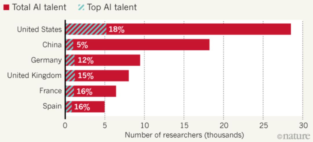 2019年,《Nature》发表文章表示:尽管中国的人工智能研究在质量上不断提高,但在高影响力的论文、科研人员能力与道德准则等方面,中国在该领域仍在追赶美国。