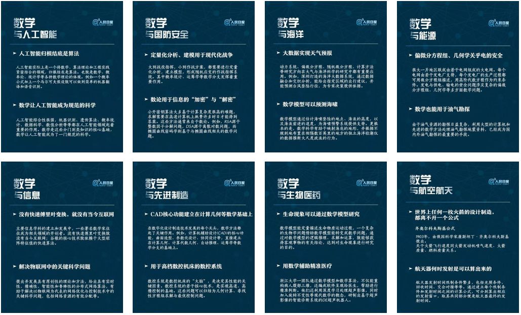 在2019年,科技部、教育部、中科院、自然科学基金委联合制定了《关于加强数学科学研究工作方案》,从政策上切实加强了我国数学科学的研究。事实上,自然科学发展至今,数学已成为各领域不可或缺的重要支撑,这其中包括了航空航天、国防安全、生物医药、信息、能源、海洋、人工智能、先进制造等与国家发展息息相关的科研方向。可以说,数学实力往往影响着国家实力,国家的发展离不开数学!