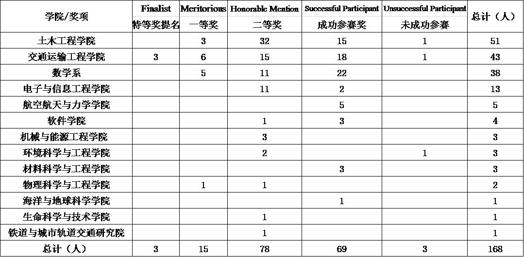 据悉,我校于2005年首次组织学生参加该项赛事。今年,为了更好的组织和管理美国大学生数学建模竞赛,特制定《关于“美国大学生数学建模竞赛”的组织管理办法》。根据此办法,从2016年开始,“要求每人均有一定的全国大学生数学建模竞赛或同济大学数学建模竞赛获奖经验”。近年来,在学校领导关心指导下,在数学系数学建模指导教师团队的努力下,我校取得了令人瞩目的成绩,这不仅提高了同济大学的国际知名度,更为学校培养具有创新精神和竞争力的优秀人才、推动数学学科教学改革做出了一定的贡献。