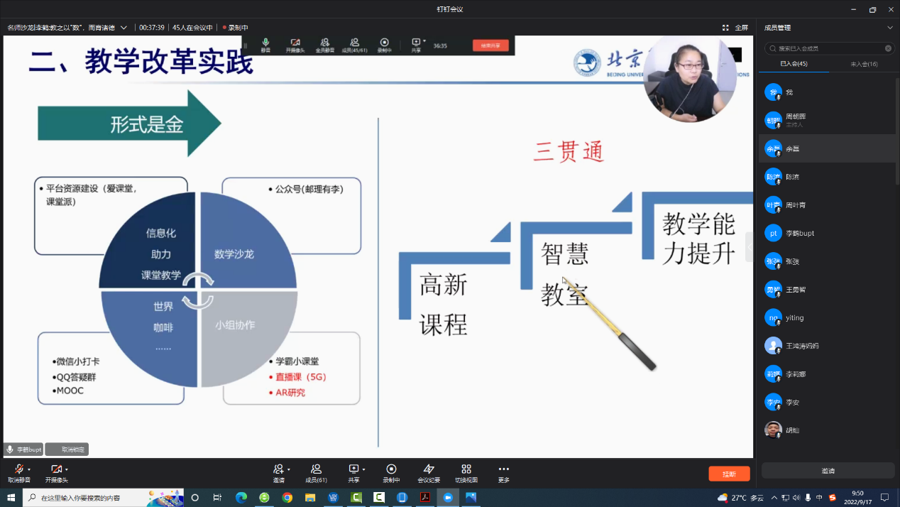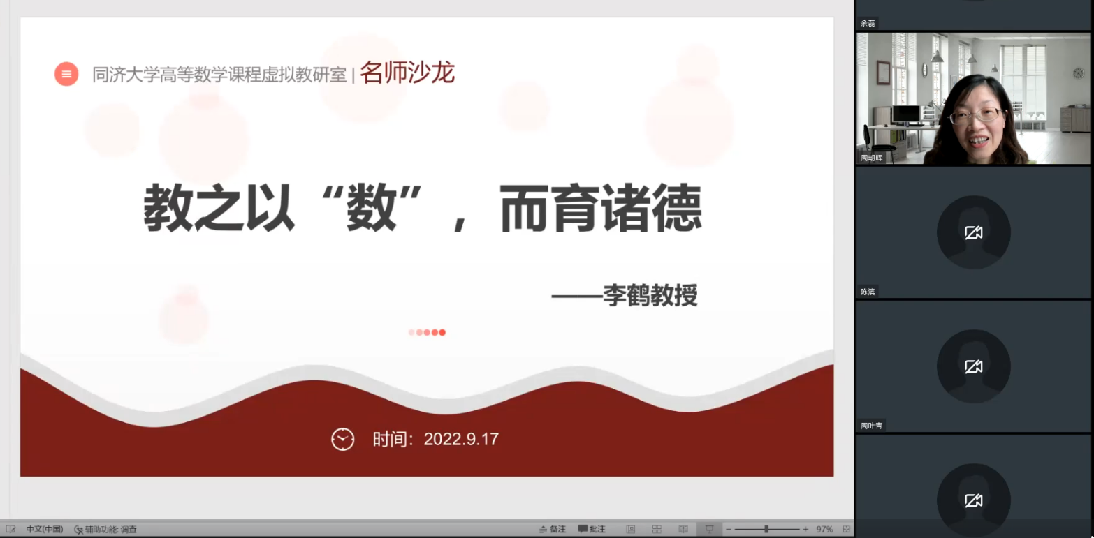 2022年9月17日上午,同济大学高等数学课程虚拟教研室成功举办了第一期“名师沙龙”教研交流活动。