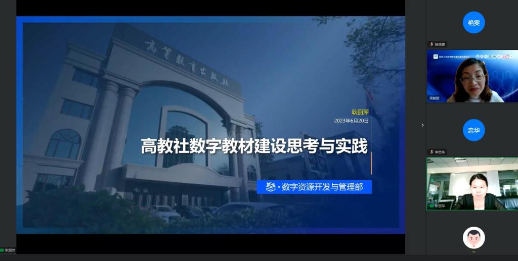耿丽萍老师从数字教材发展背景、高教社数字化教材编纂平台“云创”、数字教材在线创作操作述要、数字教材建设出版基本流程四个方面介绍了如何应用数字技术开发建设数字化、智能化的新形态教材。她表示,新一代数字教材是互联网生态下的全新教学产品,与传统教材相比,它具有融媒体呈现、交互式学习、教学性体现三个突出的特点。数字教材是教材的一种重要形态,是新时代教材体系的重要组成部分、教材建设的新领域、教育发展的新动能,加强数字教材建设体现了教材建设的时代特征,是构建中国特色高质量教材体系的必然要求,对于建设数字中国、教育强国,促进教育现代化发展,推动教育数字化战略行动具有重大意义。