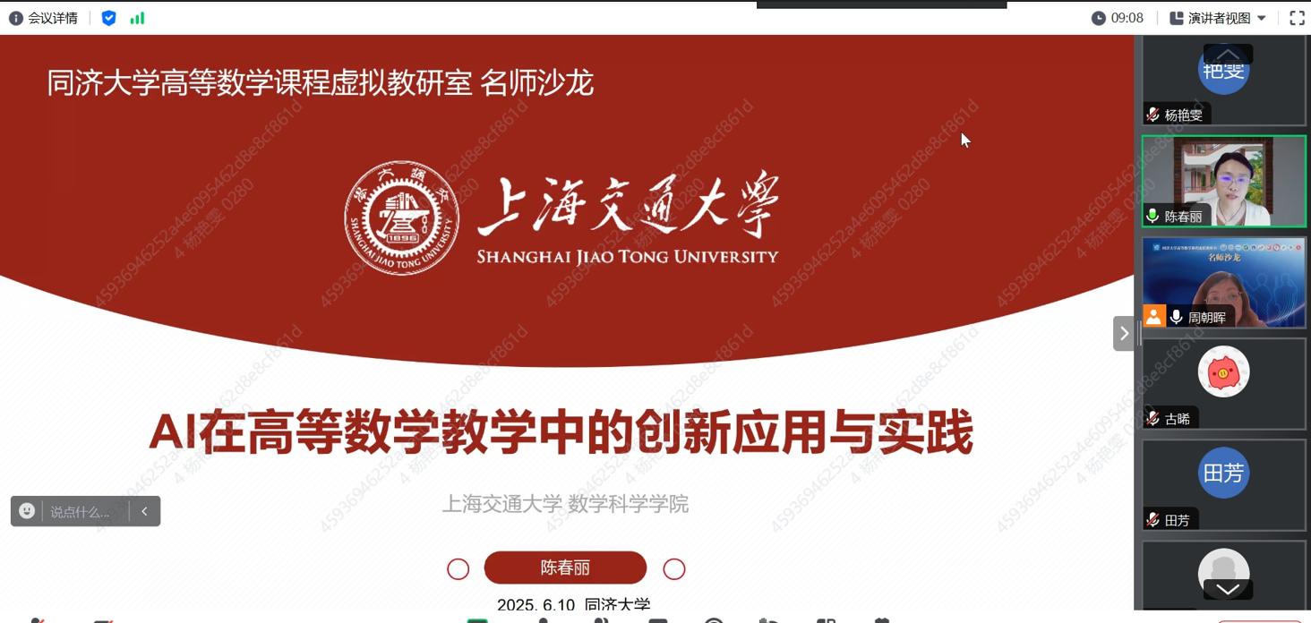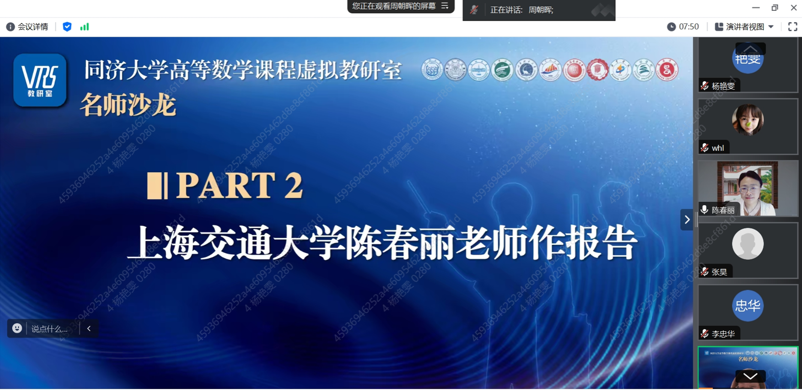 李忠华教授在致辞中表示,人工智能正深刻影响着教育教学模式,如何将AI技术有效融入大学数学教学,是当前各个高校探索的重要方向,同济大学在AI与数学双向赋能方面也开展了一些探索和实践。此次邀请上海交通大学陈春丽老师分享经验,希望加强各高校教师之间的交流与合作,共同促进教学发展。