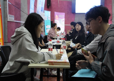 本次招聘会地点设在经纬楼一楼多功能厅,共有15家用人单位前来招聘,为学院学生提供了金融、互联网、教育等行业的众多岗位,满足我院各专业学生类型多样的求职、实习需要。招聘会上,各家用人单位积极向同学们介绍企业发展、招聘岗位、职位晋升、工作待遇等情况,参会学生积极投递简历,与用人单位交流,提出自己对企业和岗位的疑问和需求,为未来的职业规划做好准备。