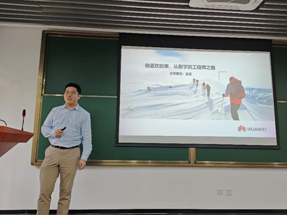 2019届校友金猛作题为“做喜欢的事,从数学到工程师之路”专场分享。金猛以“数学系毕业的学生能做什么”和“选择太多,要怎么做”两个问题为引,向同学们具体介绍了他的在校成长经历和求职经历,并给予在场同学一些找工作的建议。他在分享中详细讲述了在华为的工作经历,并介绍终端BG部门业务发展、研究方向及岗位。