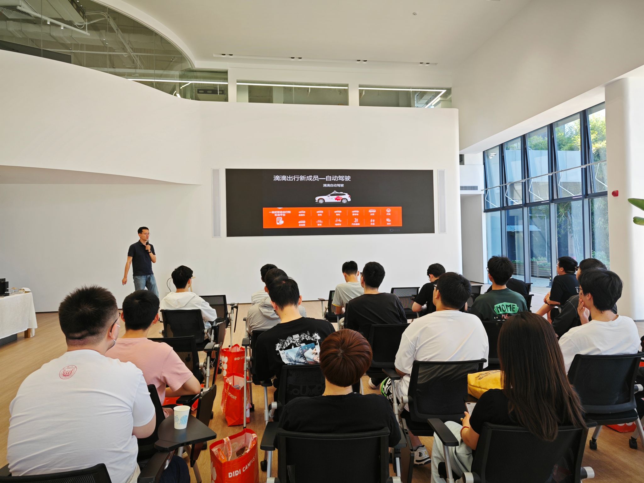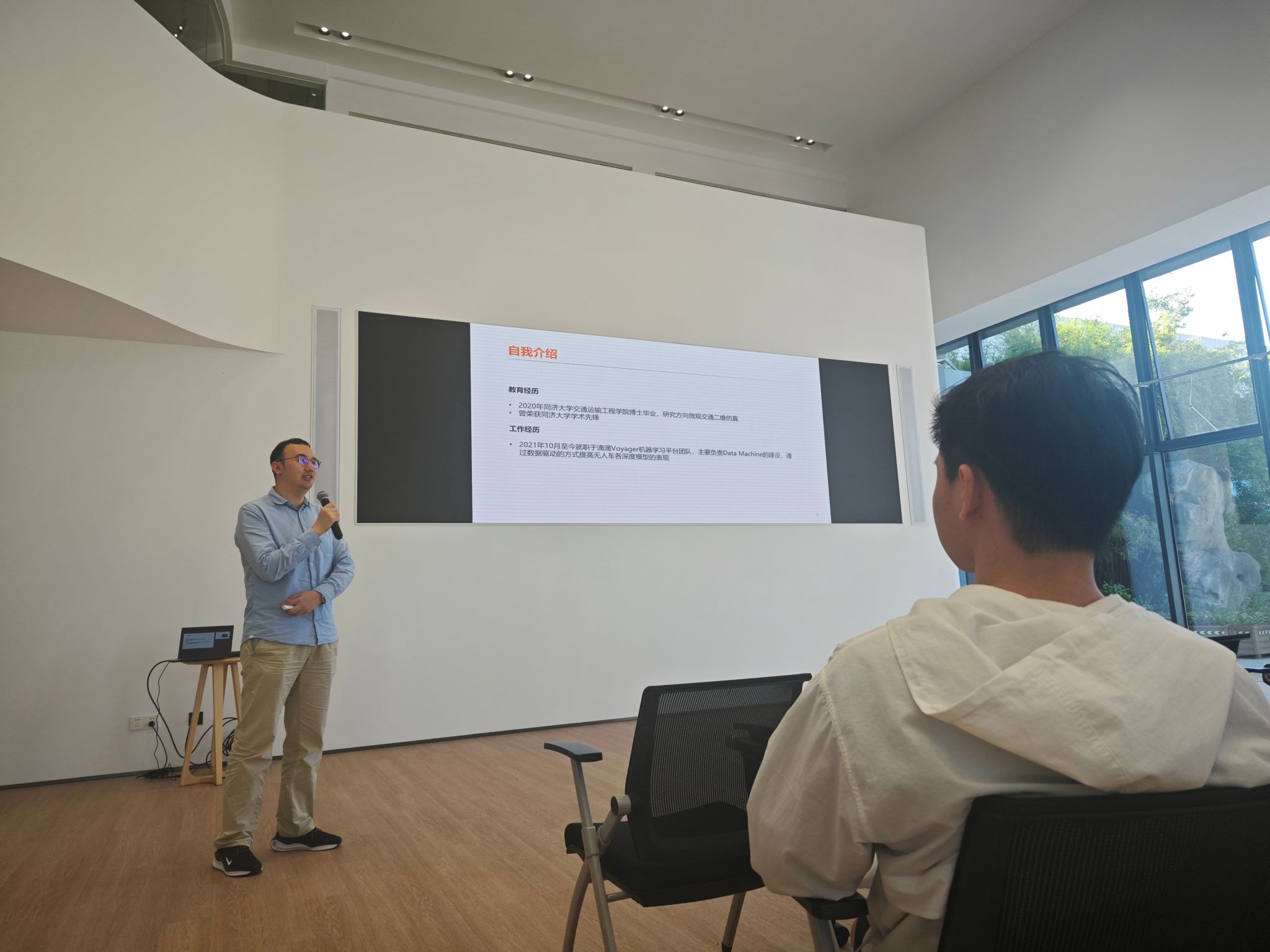 滴滴自动驾驶研发工程师崔乐博士、马子安博士为同学讲解了自动驾驶近些年的发展,对于很多长尾问题,例如恶劣天气下导致的红绿灯模糊,行人或者动物的突然闯入等,提出了关于算法的一些解决方法。同时为大家展示了一段长视频,分享了一辆自动驾驶的汽车在一整天工作的记录。同济校友2020届马子安博士还介绍了自己在滴滴的职场工作经历,分享了自己充满挑战且有意义的工作,并为同学们针对未来求职方向相关问题给出了自己的回答。